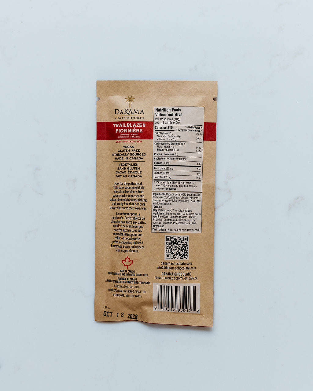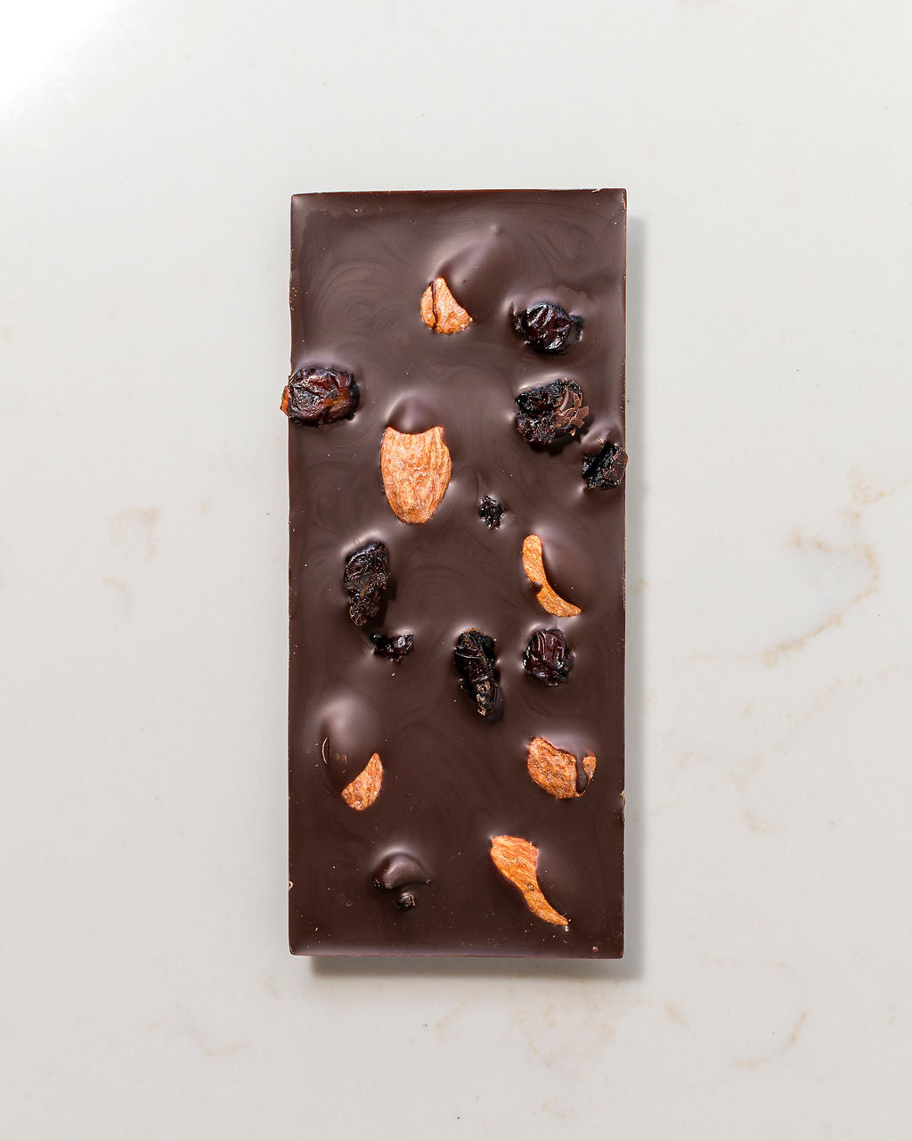 Fuel for the path ahead. This date-sweetened 70% dark chocolate bar blends fruit juice sweetened cranberries and crunchy almonds for a nourishing trail-ready bite that honours those who carve their own way.